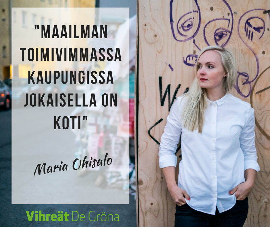 ”Helsingin täytyy olla kaupunki, jossa on mahdollista työskennellä, asua ja saada laadukkaita palveluita. Helsingin on oltava kaupunki, jossa on helppo hengittää, oli kyse sitten toimeentulosta tai ilmastonmuutoksen torjumisesta päästöjä kitkemällä”, tiivisti valtuutettu ja vihreiden varapuheenjohtaja Maria Ohisalo ryhmäpuheessa vuoden 2019 talousarvioehdotuksen lähetekeskustelussa.
